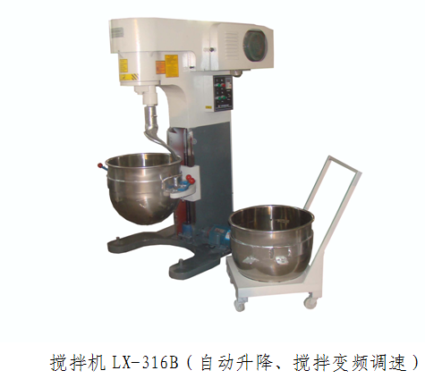 傳動電機(jī)用4KW齒輪電機(jī);開關(guān)控制快速、慢速;攪拌桶升降用手搖升降;加工容量:80kg;配兩個(gè)不銹鋼桶;推車1個(gè);機(jī)器外觀尺寸:長1150mmX寬800mmX高1300mm